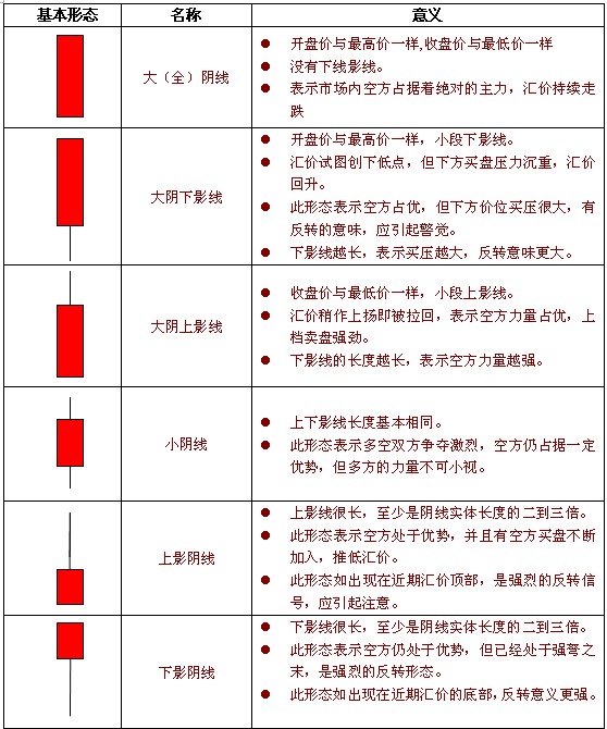 b) 阴线基本形态分析